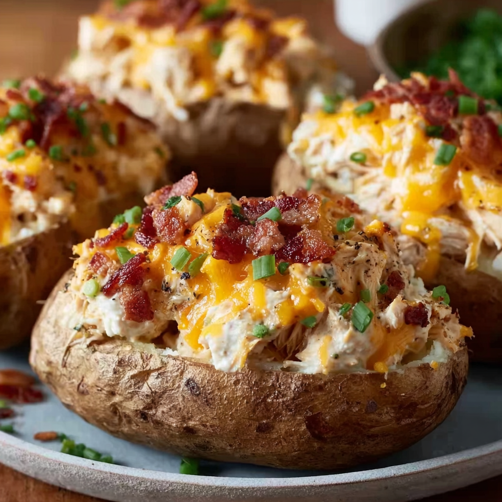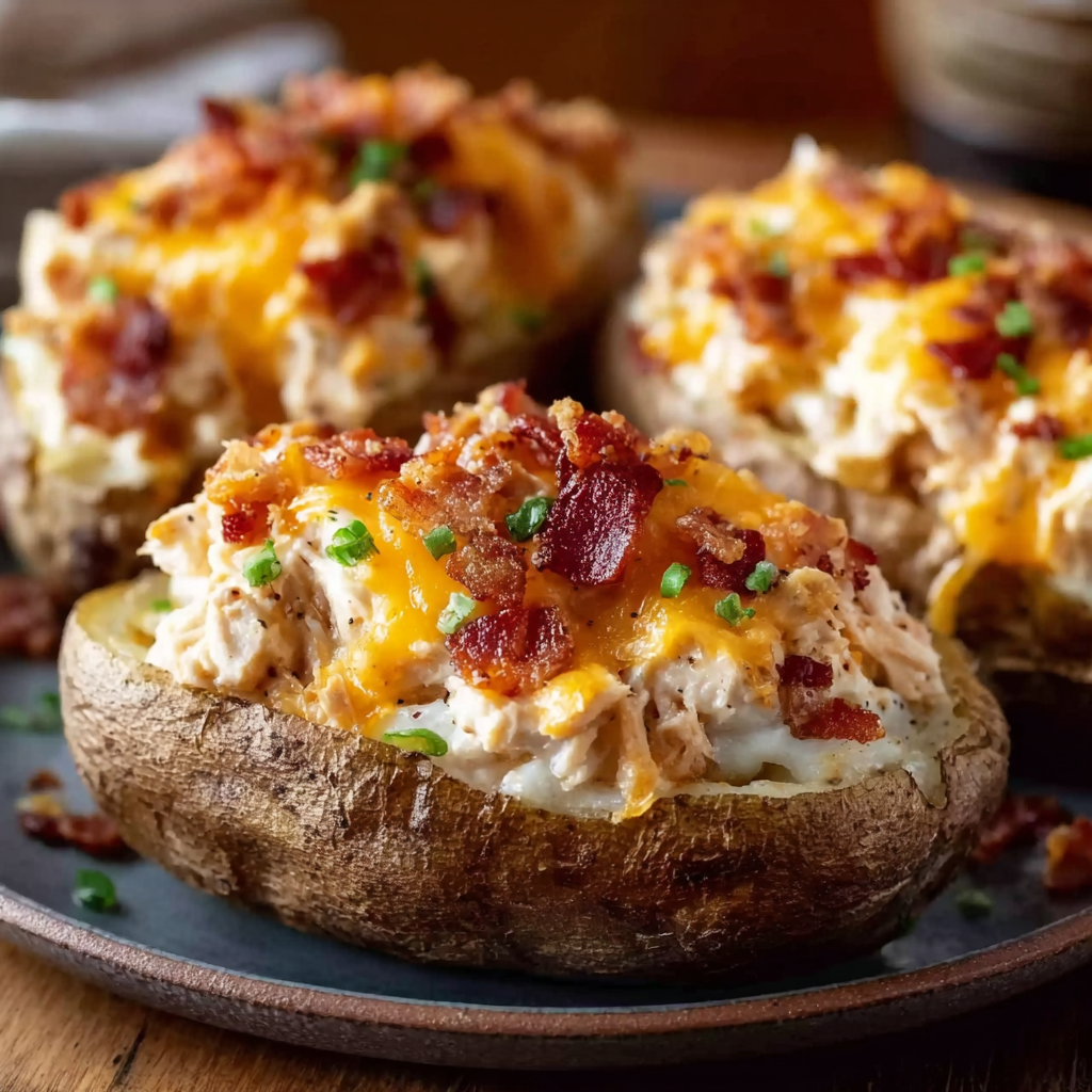 Crack chicken is a creamy, cheesy, and savory dish that has earned its name due to its addictive flavor. The classic recipe typically includes shredded chicken, cream cheese, ranch seasoning, cheddar cheese, and bacon — all ingredients known for their rich, satisfying taste. This combination creates a perfectly balanced filling that’s hearty, tangy, and full of umami, making it ideal for stuffing into baked potatoes.