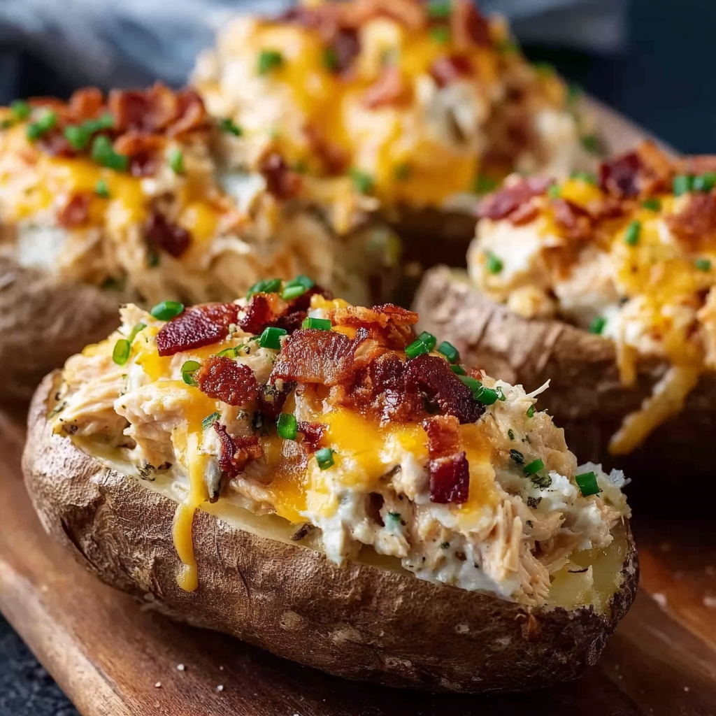 Originally inspired by the viral crack chicken trend, which blends cream cheese, ranch seasoning, and chicken into a rich mixture, this recipe takes the idea to a new level by using it as a filling for baked potatoes. According to Wikipedia’s description of ranch dressing, the tangy blend of buttermilk, garlic, and herbs is a favorite among American condiments, and it plays a major role in the flavor profile here. Pair that with the starchy comfort of a baked potato, and the results are undeniably crave-worthy. For those unfamiliar with the russet potato, you can read more about its ideal texture for baking on Wikipedia.